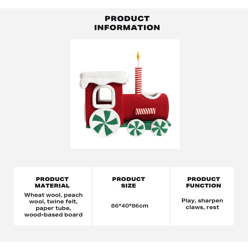 This Xmas train cat tree is a magic castle, park and cosy nest for your beloved cat. It is suitable for kittens.